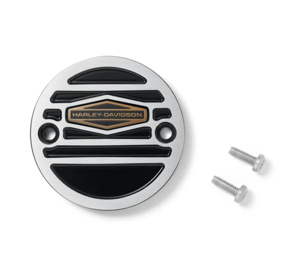 • Brass-colored medallion inspired by a classic Harley-Davidson tank emblem for retro style with a modern twist