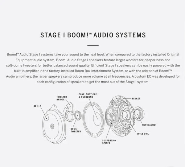 Fits ’14-’16 Touring models equipped with a Boom!™ Box audio system. Required to add a 3rd or 4th set of Boom!™ Audio Stage I speakers. Dealer Digital Technician software update is required. Dealer installation is recommended. Not compatible with models equipped with Boom!™ Audio Stage II components.