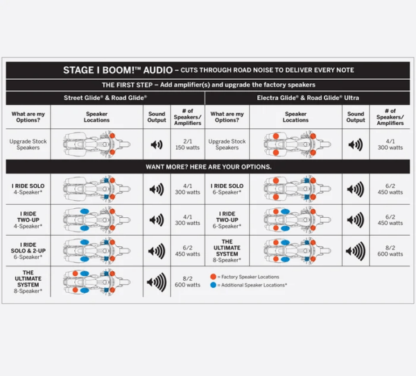 • Stop by a participating dealer to interact with a unique audio display that lets you simulate how your bike will sound with Boom! Audio upgrades