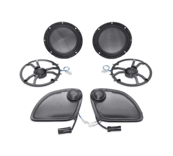 Fits ’14-’22 FLTRU, FLTRUSE, FLTRX and FLTRXS models. Stock on ’14-’22 FLTRXSE models. Requires separate purchase of a Boom!™ Audio accessory amplifier. Not compatible with models equipped with Stage I Boom!™ Audio components. Dealer installation and software updates are required.