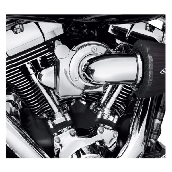 This cover dresses the area between the Twin Cam cylinders for a custom look. The formed cover hugs the contour and conceals the electronic control module throttle body for a clean appearance.