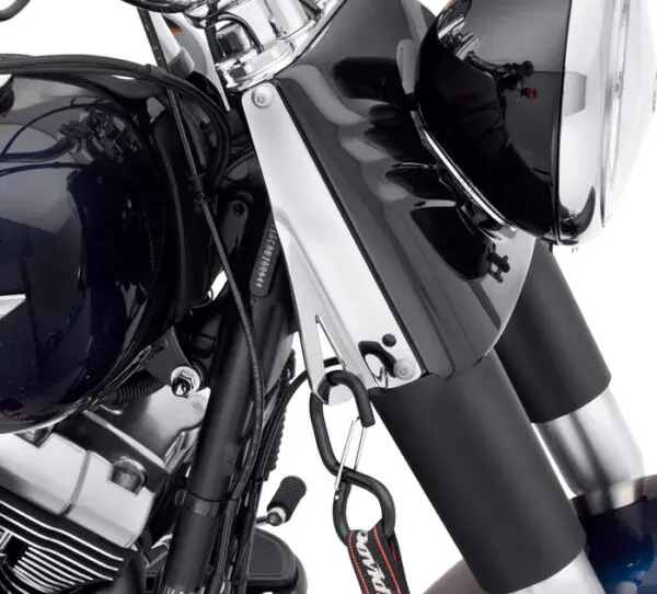 Simplify the process of securing your bike to a trailer or bike lift. These stylish chrome Tie-Down Brackets mount cleanly to the front fork cover and offer a secure method to connect tie-down straps.