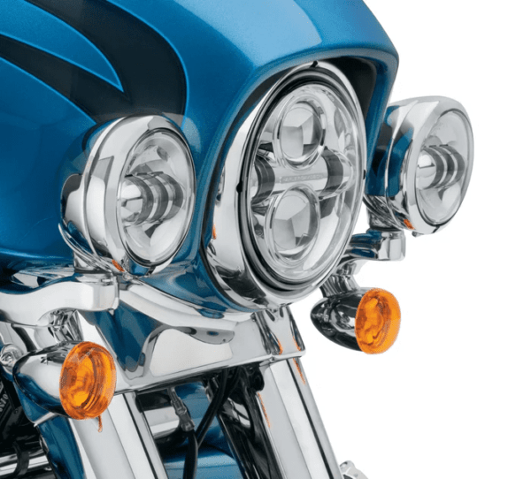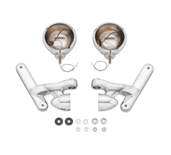 Fits ’14-later FLHT, FLHTK, FLHTCU, FLHX, FLHXS and FLHXST models. Kit includes passing lamp housings, retaining rings, mounting brackets, bullet turn signals, auxiliary lamp switch and hardware. Auxiliary Lamp Bulbs sold separately.