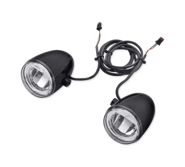 • Long-life solid-state LED lamps are sealed in shock and vibration-resistant housings that mount to the engine guard or Road Glide® fairing for a clean appearance