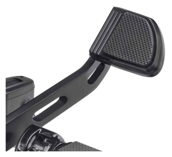 Harley-Davidson® Defiance Brake Pedal Pad – Small, 50600256. Fits ’18-later FXBR and FXBRS models. Also fits ’18-later Softail models equipped with Billet Style Rear Brake Lever for Forward Controls P/N 41600218, 41600219 and 41600220. Show your complete disregard for the rules. Defined by sweeping curves, this complete assortment of hand and foot controls feature a rich tuxedo black finish that is the perfect complement to your sinister ride. The design incorporates a field of textured black rubber surrounded with deep longitudinal lines, and is finished with a contemporary H-D logo. Black Anodized Finish. Features a rich black rubber panel set into the recessed surface, surrounded by deep accent grooves. Includes: brake pedal pad only. 1 year limited warranty. 50600256