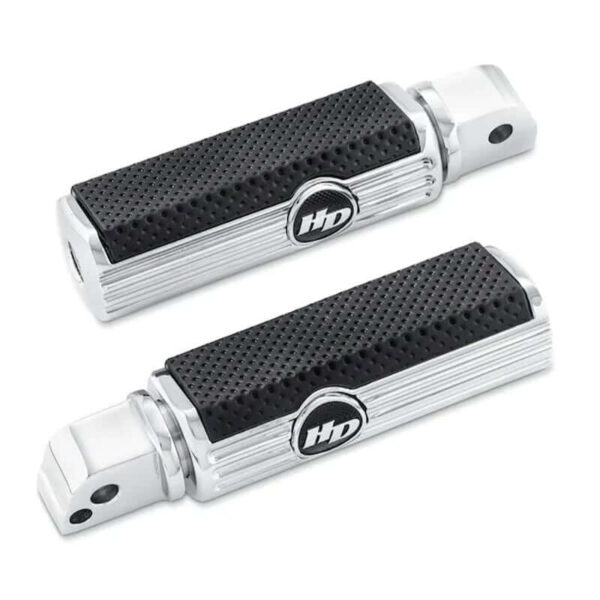 Dare to be bold. Dressed in luxurious chrome, this complete hand and foot control assortment raises the customization bar. Defined by sweeping curves and accented with deep longitudinal lines and a contemporary H-D logo, the Defiance Collection features rich textured black rubber traction surfaces set in a field of mirror chrome.