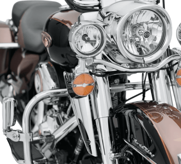 Fits ’95-later FLHR, FLHRC and FLHRS and ’14-later FLHRSE models. Also fits ’06-’13 FLHT, FLHTC, ’06-later FLHX and FLHXS, ’19-later FLHT, ’20-’22 FLHXSE and ’22-later FLHXST models. Does not fit models equipped with Fairing Lowers. Does not fit ’95-’13 models equipped with Lighted Fork Slider Kit or Custom Auxiliary Lighting Bracket Kit P/N 69227-04A or 68000043. Fits ’23 FLHFB models.