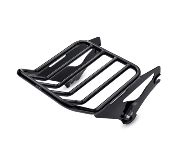 Fits ’09-later Touring models equipped with 4-point Docking Hardware Kits. ’09-later Touring models equipped with rigid-mount Tour-Pak® luggage require purchase of appropriate H-D® Detachables™ Tour-Pak® Conversion Kit. FLHX, FLHXS, FLHXST, FLTR, FLTRX and FLTRXST models require separate purchase of Antenna Relocation Kit or Hidden Antenna Kit. Some FLHRC EU registration plates may interfere with rack.
