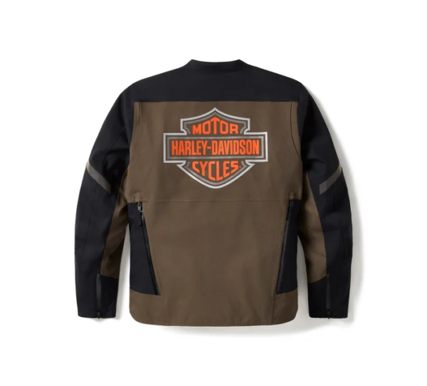 Take in the ride, not the rain with our H-D® Waterproof Textile Riding Jacket. Made from rugged laminated polyester twill that’s waterproof and seam sealed with water-resistant zippers. It makes your riding comfort a priority with features like zippered venting, reflective material to enhance visibility, and impact protection from D3O® Ghost™ armor in the shoulders and elbows. This men’s motorcycle jacket is tested and certified to meet abrasion, tear, and seam strength requirements. The contrast piecing complements our vibrant Bar & Shield graphics for an enduring H-D look. School yourself on the specs, then snag yours while supplies last.