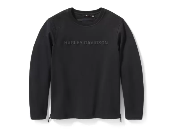 This riding fleece is designed with rider-focused details, including abrasion-resistant panels at key wear points and reflective accents to enhance visibility on the road. Its streamlined pullover design features a crew neck for easy layering under your jacket, while rib-knit cuffs and hem help block out the wind. Bold Harley-Davidson branding across the chest makes a statement that’s unmistakably authentic.