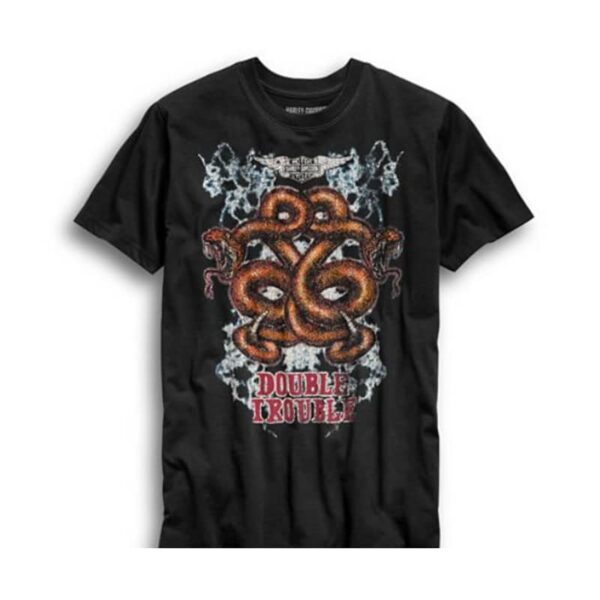 Inspired by vintage dealer tees, the Double Trouble Tee is loaded with epic art. Twin rattlers coil on the back of this soft, all-cotton men’s short sleeve shirt. This one will catch jealous second glances at crowded concerts and rallies.