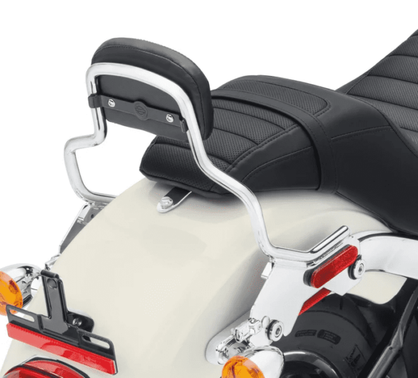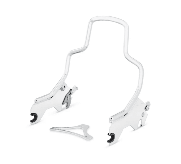 A sissy bar and passenger backrest pad is the starting point for building a complete touring machine. The backrest adds long-range comfort and support and provides a feeling of confidence and control for the passenger. HoldFast™ One-Piece Uprights feature an exclusive latch system that permits the backrest to be installed or removed in seconds to add versatility to your ride. The HoldFast sissy bar upright simply slips into position on the docking points, and the fingertip latches are clicked into position for a positive lock.