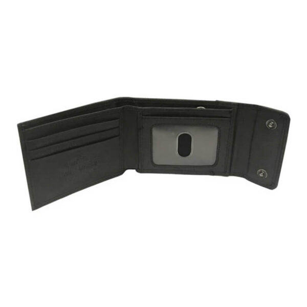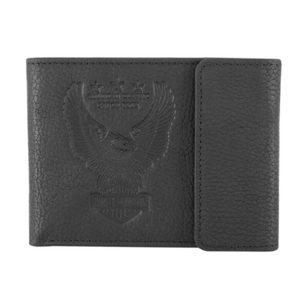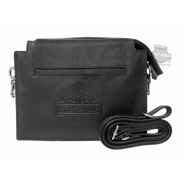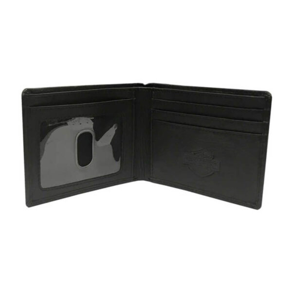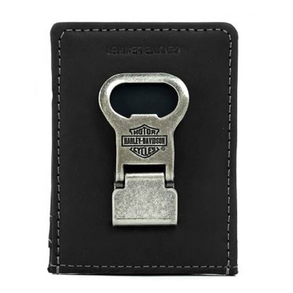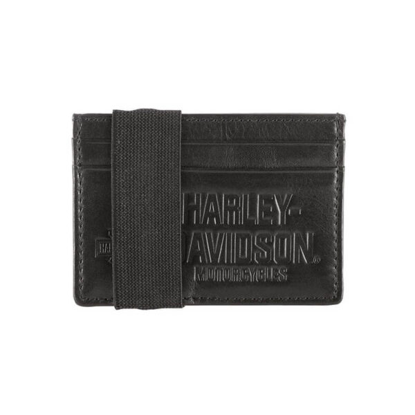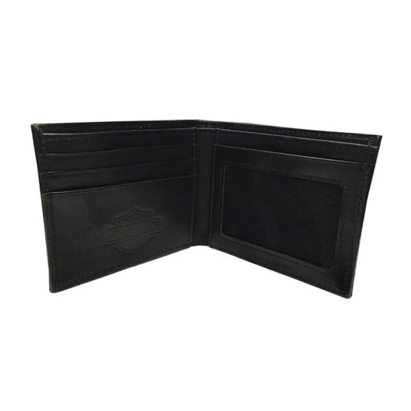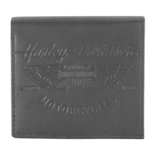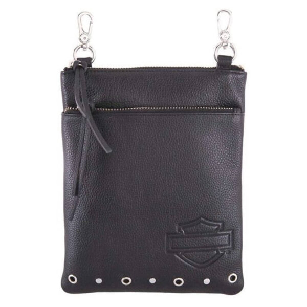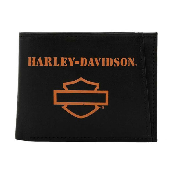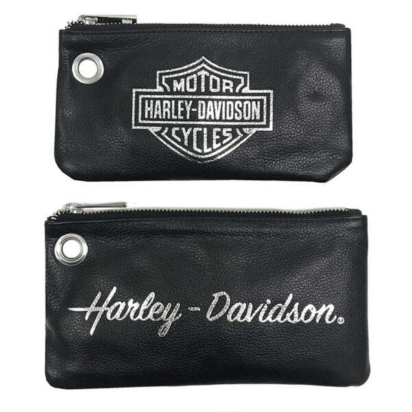 - Black genuine leather with polished nickel studs and embossed script “Harley-Davisdon”