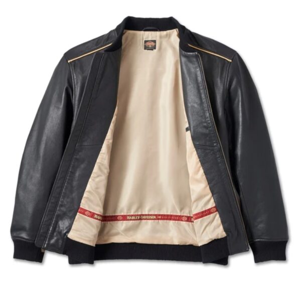 For a timeless look that celebrates our longstanding history, add the 120th Anniversary Leather Jacket to your cart. it’s crafted from midweight goatskin leather with a rib-knit collar, cuffs, and waistband for shape-keeping comfort. This bomber look features an interior stash pocket for your essentials, plus earns style points for its contrast lining and piping. Its finished with our custom Harley-Davison Anniversary branding for a style that commemorates the motorcycle company you love.
