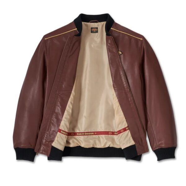For a timeless look that celebrates our longstanding history, add the 120th Anniversary Leather Jacket to your cart. It’s crafted from midweight goatskin leather with a rib-knit collar, cuffs, and waistband for shape-keeping comfort. This bomber look features an interior stash pocket for your essentials, plus earns style points for its contrast lining and piping. Its finished with our custom Harley-Davison Anniversary branding for a style that commemorates the motorcycle company you love.