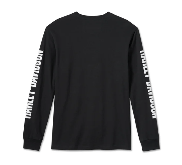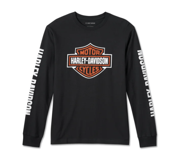 Rep your favorite motorcycle company big-time in our Bar & Shield Long Sleeve Tee. Made for total comfort from 100% ring-spun cotton jersey with rib-knit neckline and cuffs to keep its shape. Besides our namesake screaming on the sleeves, it’s branded with our most iconic logo for a tried-and-true Harley-Davidson look.