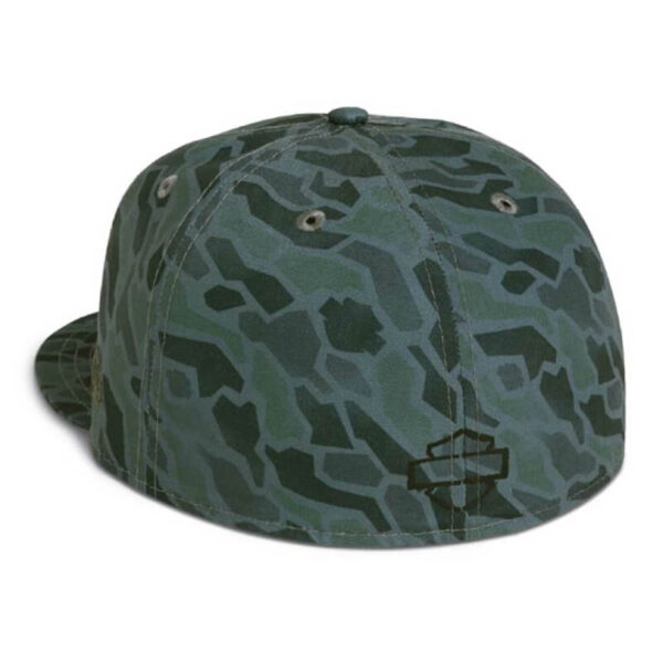 Men’s Camo Logo 59FIFTY Baseball Cap – Gray & Green, 97702-21VM. Made from 100% cotton. High profile fitted cap. Full crown and flat visor. Printed transfer graphics on front and back. 97702-21VM