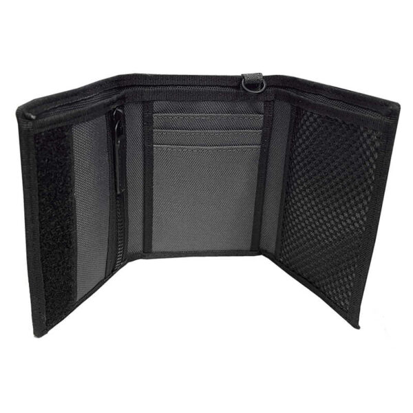 - Features 3 credit cards slots, mesh ID window, zippered coin pocket and cash slot