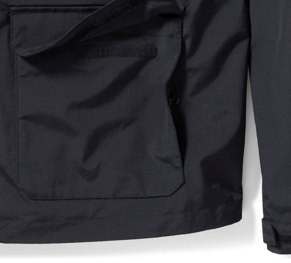 Design Details: Zip-off outer jacket features waterproof seams and toggle-cord hood with contrast lining. Inner jacket features a split mandarin collar, rib-knit cuffs and hem, and a snap-on cuff section that secures to outer jacket.