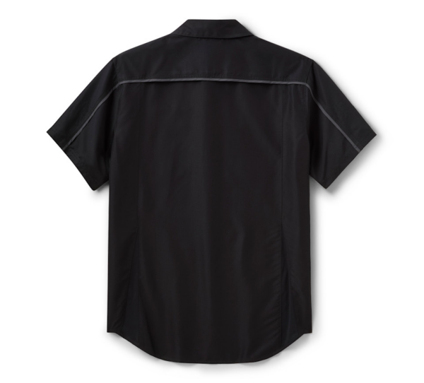 Feel and look cool in our H-D® TECH Willie G ™ Skull Vented Shirt. Its polyester ripstop and mesh build wicks moisture plus has venting to help minimize any possible sweat situations. This men’s short sleeve button down features zippered chest pockets for stashing essentials, and a hidden snap-down collar that stays put under riding gear. Its tonal look is finished with piping and an embroidered Willie G Skull parked on front. Know the history—though the Skull is one of his most popular creations, Willie G. Davidson also designed several motorcycles, including the 1971 FX Super Glide® model and the 1977 FXS Low Rider® model.