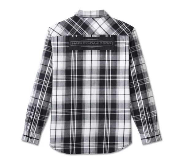 Men’s Stacked Bar & Shield Long Sleeve Plaid Shirt – Plaid – Harley Black & Cloud Dancer