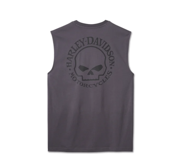 Our Willie G Skull Muscle Tee is an ideal pack-long shirt for rides and rallies. It sleeveless style is crafted from a breathable midweight cut of cotton jersey with a rib-knit neckline to keep its shape. Finished with the Willie G. Davidson Skull brooding on front and boasting on back. Know the history—Willie G originally created the Skull for the 2000 Daytona Bike Week, and it’s been a rider favorite ever since.