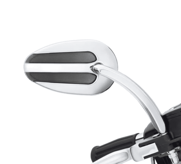 Function and style in one package. This forged and chrome-plated mirror combines a traditional swept shape with a contemporary addition – forward-facing auxiliary lighting.