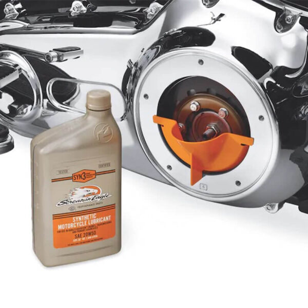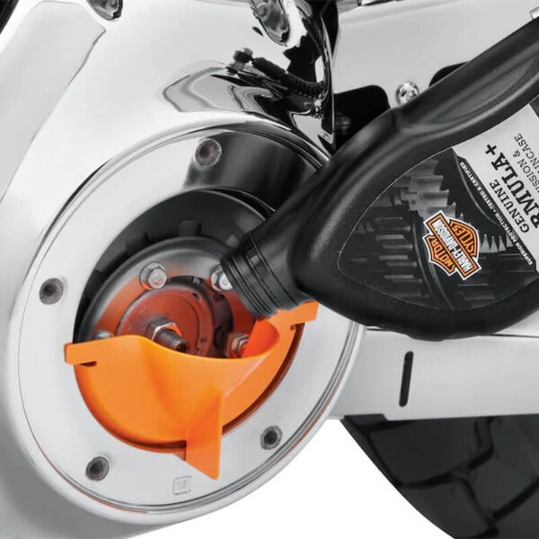 This reusable funnel makes it easy to add oil to your primary cavity. The funnel simply snaps into the derby cover opening to permit hands-free filling on the specified models.