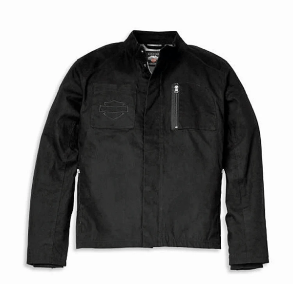 Long story short? This cropped jacket won’t bunch up when you’re riding and offers venting options for a comfortable journey — no matter how short or long. Add the H-D® Rendezvous Textile Riding Jacket to your gear assortment and set your GPS for adventure. Made from abrasion-resistant all natural waxed cotton canvas, this textile jacket includes plaid cotton body lining and polyester sleeve lining — plus, the zip-close underarm vents include breathable polyester mesh lining. Rider-friendly assets include a two-way front zip-closure with the hidden-snap placket for wind & rain resistance, pre-curved sleeves with cuff zippers over rib-knit cuffs and an action back. For your convenience, this jacket offers vertical-zip hand-warmer pockets, one vertical-zip chest pocket and one hidden-snap chest pocket, along with an interior vertical-zip pocket with media port. And, the understated tone-on-tone Bar & Shield® silhouette adorns the right chest pocket for a brand identity that fellow riders and enthusiasts won’t miss. That’s the long and short of it. Dark Sapphire Blue. Cotton. Harley-Davidson®. Import. 97114-22VM