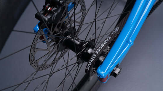 The Gates™ carbon-fiber belt drive is smooth, quiet, and maintenance-free; it requires none of the frequent lubrication or adjustment of a traditional chain-drive system.