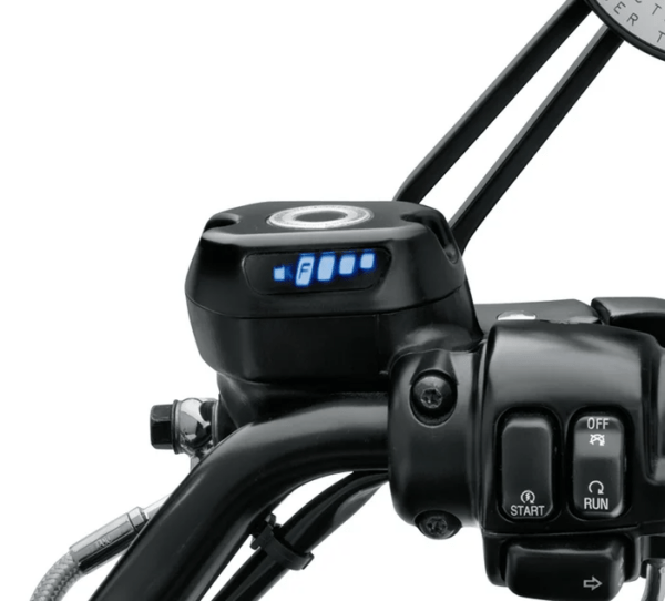 Finally, keep an eye on your Sportster™ model fuel level without watching how many miles you have traveled. In-tank sending unit employs capacitive sensing technology to accurately monitor the fuel level, and relays the information to a handlebar-mounted LED indicator for at-a-glance viewing.