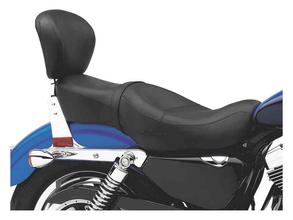 Harley-Davidson® Sundowner™ Seat, 51507-04. Fits ’04-’06 XL models equipped with 4.5 gallon fuel tank. Models not equipped with passenger pegs require separate purchase of Passenger Foot peg Kit P/N 50203-04 (’04-’13 models) or P/N 50500270 (’14-later models). Seat width 15.0″; passenger pillion width 12.5″. The Sundowner™ Seat provides the maximum in long-riding comfort, along with a healthy helping of style and quality. Deep-bucket design puts your body in the proper touring position. Generous padding makes it comfortable for both the rider and passenger. Dished shape provides added rider back support. Wide passenger pillion is shaped to minimize pressure points. Material Content: Vinyl. Includes: Seat bracket, grab strap and all necessary mounting hardware. 1 year limited warranty. Backrest not included. 51507-04