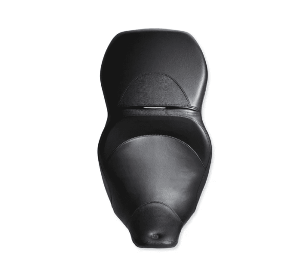 The seat is sculpted to provide superior support and comfort, with a slight bucket shape to provide room to vary your riding position fore and aft. The seat’s level seating surface does not pitch the rider forward, and the overall ride height is similar to stock Electra Glide® and Road Glide® Ultra seating.