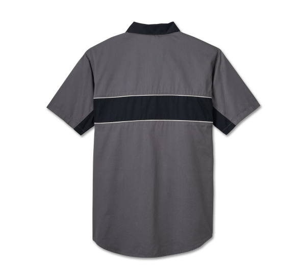 Design Details: Contrast collar, piecing, and piping. Hidden snap-down