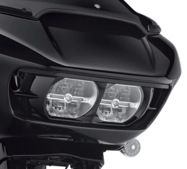 This sleek one-piece headlamp surround adds a clean custom look to the nose of the Road Glide® model.