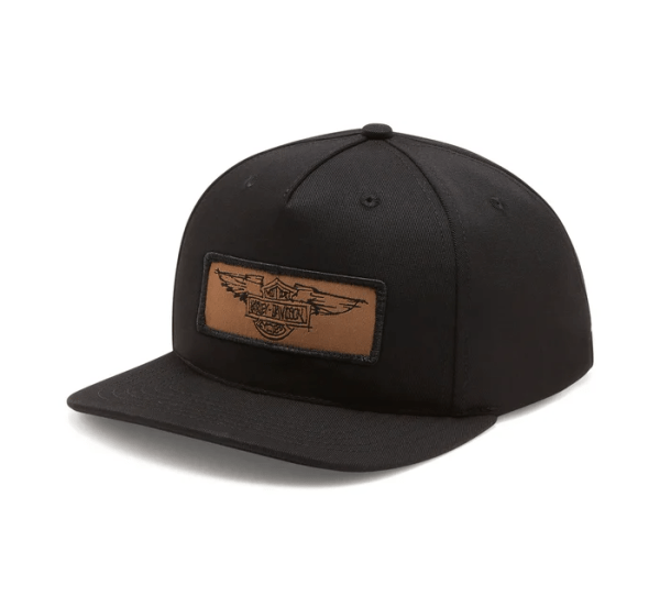 Enduring style honors legendary artistry on the Willie G Wings Leather Patch Adjustable Baseball Cap. Made from breathable cotton twill with an adjustable snap back for your ideal fit. This unisex hat features a custom branded sweatband and contrasting inside brim. Finished with an original Willie G sketch inspired by our 1930s Silver Wing logo. Part of the Willie G Sketch Collection of authentically made in USA garments that feature hand-drawn and signed artwork by our iconic designer, Willie G. Davidson.