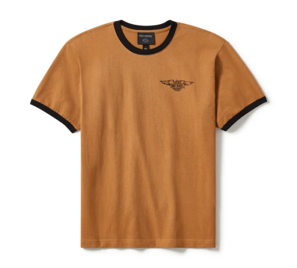This favorite casual look shares a lane with a creative legacy in the Willie G Bar & Shield Sketch Art Ringer Tee. Its relaxed fit is cut from heavyweight cotton jersey that’s enzyme washed for a well-worn look and feel. True to a ringer silhouette, this unisex t-shirt features a contrast neckline and cuffs. It showcases genuine Willie G style inspired by our most notable Bar & Shield. Part of the Willie G Sketch Collection of authentically made in USA garments that feature hand-drawn and signed artwork by our iconic designer, Willie G. Davidson.
