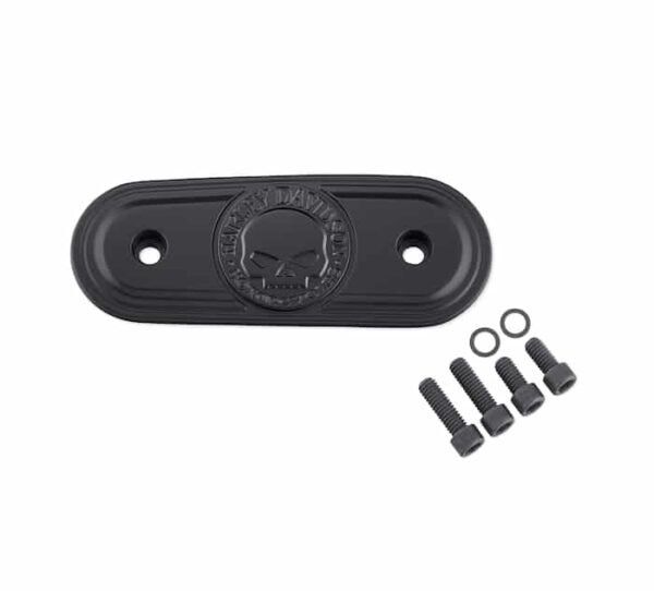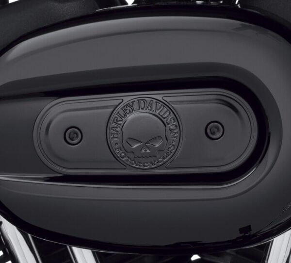 Penned at the hand of Willie G, the famous Skull Collection makes a shift to the dark side. Completely drenched in black, the raised skull and surrounding Harley-Davidson Motorcycle script adds a subtle ominous touch to your ride.
