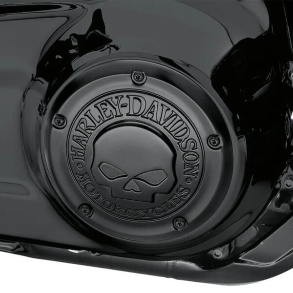 Penned at the hand of Willie G, the famous Skull Collection makes a shift to the dark side. Completely drenched in black, the raised skull and surrounding Harley-Davidson Motorcycle script adds a subtle ominous touch to your ride.
