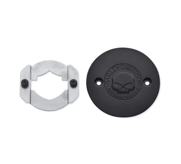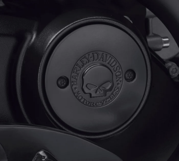 Penned at the hand of Willie G, the famous Skull Collection makes a shift to the dark side. Completely drenched in black, the raised skull and surrounding Harley-Davidson Motorcycle script adds a subtle ominous touch to your ride.