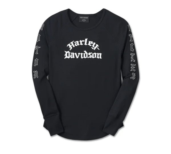 Moto-inspired style never expires on our Authentic Long Sleeve Rib Top. Crafted from a cotton/modal blend with a hit of spandex for added stretch that’s ribbed for a textured look (zoom in to see). This women’s top features a flattering scoop neckline, raglan sleeves, and a shirttail hem. The back stays clean to make room for the distinctive seasonal graphics filling the front and riding down the sleeves.