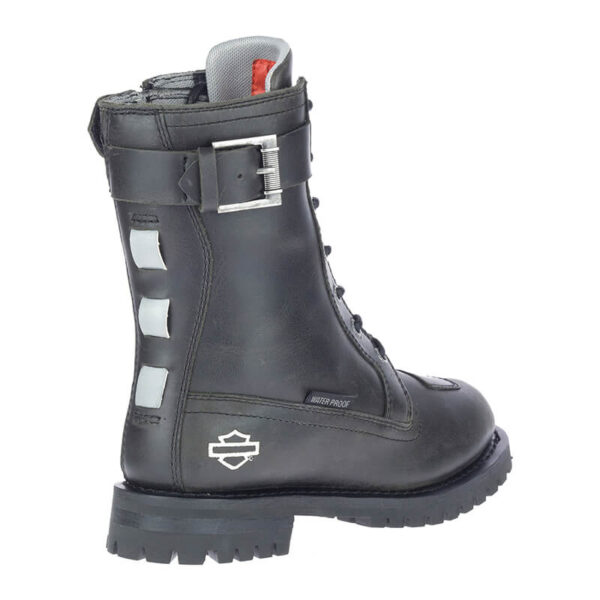 Women’s Bremerton Riding Appropriate* Black 7.25-Inch Motorcycle Boots, D84646. These waterproof boots are definitely made for more than walking. The motorcycle vibe is clear, from the ground to the top of the shaft. With a smooth rounded toe, a shifting pad has been added to increase durability. Seven lacing eyelets, a snugging buckle, and YKK® locking inside zippers ensure a secure fit. A fabric badge denotes the boot’s waterproof feature for quick identification. A cushion padded tongue makes all-day wear all the more comfortable. The uppers are made with breathable waterproof full-grain leather. The full-length lining has a breathable Hydro-Guard™ waterproof membrane. The shaft features reflective back weaving. A built-in ankle insert provides additional comfort. A silver colored silhouette Bar & Shield® logo is embroidered on the heel, and a metal badge adorns the bottom lace. The street side rubber soles have a classic orange Bar & Shield® logo at the instep, and outsoles are rated “BEST” for slip and oil resistance. The boot’s sole, insole and upper are bound using resoleable Goodyear® Welt construction processes, the most labor intensive and durable construction method available. Total height: 8.5″, Shaft height: 7.25″, Heel height: 1.25″. Sizes US: M 5-10, 11. Manufacturer Part Number, Black-D84646. Wolverine® and Harley-Davidson® have a long tradition of bringing original and functional footwear to our motorcycle enthusiasts. Loyal. Tough. Fearless. Our Footwear embodies the spirit of the open road, as well as the men and women who proudly wear the name. With a growing global presence, Harley-Davidson® Footwear markets functional riding and fashion footwear to anyone who seeks quality and values the Harley-Davidson® brand. Whether it’s performance or fashion, we have what you need. Officially Licensed Harley-Davidson® Product by Wolverine®. *Riding Appropriate – Abrasion, slip, and oil-resistant boots, ideal for riding motorcycles.