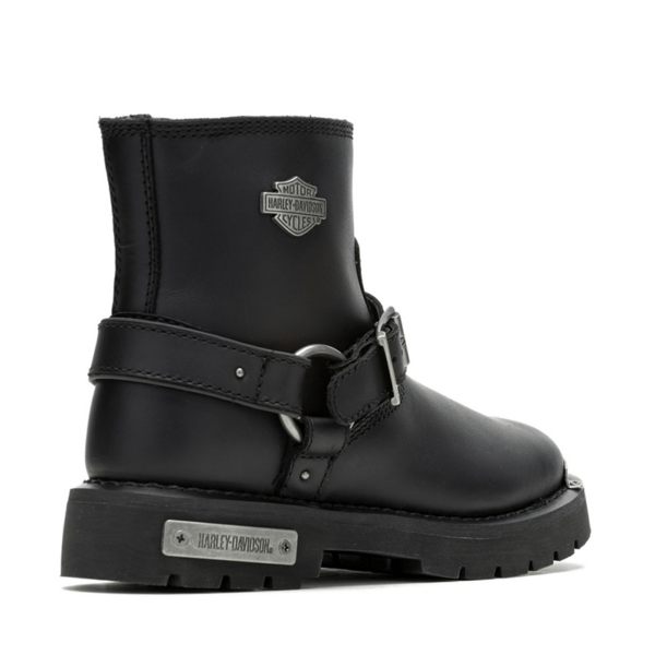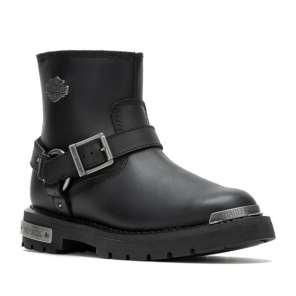 Harley-Davidson® Riding Appropriate* Women’s Devi Motorcycle Boots, D87304. The Devi is a performance harness boot with premium D30® ankle protection and reflective piping. Designed with the metal Bar & Shield® toe and heel logo plates, this rebellious style is packed with H-D® power. This motorcycle boot has everything you want. Made with full-grain leather and a full-length mesh lining, the boot has D30® materials built-in, the world’s #1 impact protection brand. D30® materials offer the thinnest, most advanced protection against impact. Reflective piping enhances your visibility in low light conditions – a step towards being seen at night. These safety enhancements help ensure a safe arrival. The toe is rounded and supports a metal logo plate. Moving up the vamp, the front cross-strap attaches to the harness O’Ring with a logo buckle. Another logo metal plate is attached to the heel, and a Bar & Shield® logo is displayed at the top of the shaft. Donning is made easy with YKK® locking inside zippers – step-in, zip-up, and you’re ready to mount-up. The street-side outsole features grippy tread elements; a Harley-Davidson® logo in embossed at the instep. The boot’s sole, insole and upper are bound using Goodyear® welt construction processes, a labor intensive and durable construction method. The boot’s outsole performance is rated “BEST” for slip and oil resistance. No matter the activity, whether uptown, downtown, at work or play, or while riding on your motorcycle, these boots will get you there in style and comfort. Total height: 6.75″, Shaft height: 5.5″, Heel height: 1.25″. Sizes US: M 5-10, 11. Manufacturer Part Number, D87304. Wolverine® and Harley-Davidson® have a long tradition of bringing original and functional footwear to our motorcycle enthusiasts. Loyal. Tough. Fearless. Our Footwear embodies the spirit of the open road, as well as the men and women who proudly wear the name. With a growing global presence, Harley-Davidson® Footwear markets functional riding and fashion footwear to anyone who seeks quality and values the Harley-Davidson® brand. Whether it’s performance or fashion, we have what you need. Officially Licensed Harley-Davidson® Product by Wolverine®. *Riding Appropriate – Abrasion, slip, and oil-resistant boots, ideal for riding motorcycles.