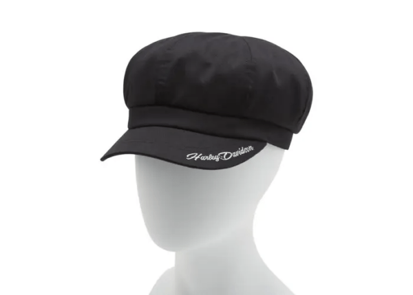 Timeless style gets a legendary moto upgrade on the Harley-Davidson® Newsboy Cap. Its cotton/polyester shell has a breathable cotton lining that’s custom allover printed for an elevated look. True to a newsboy silhouette, this women’s hat has a larger crown volume and a softer, more curved brim that adds a relaxed, casual look. Minimally branded to top off nearly any outfit in your wardrobe.