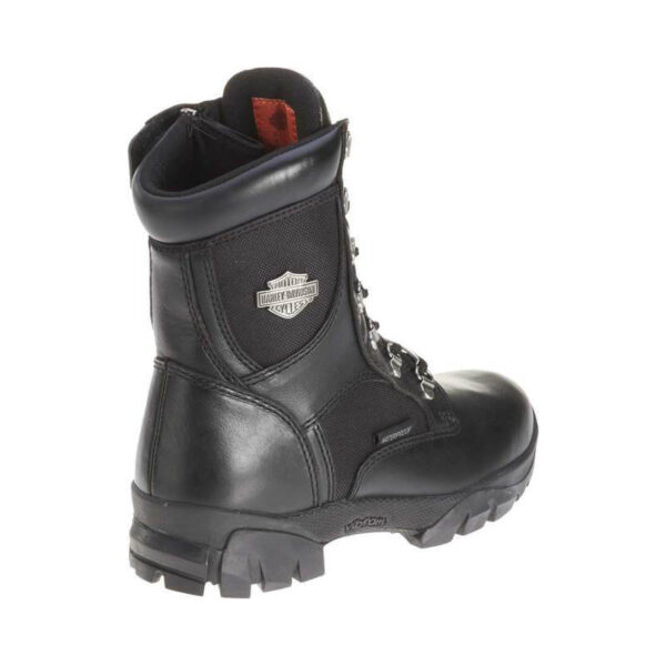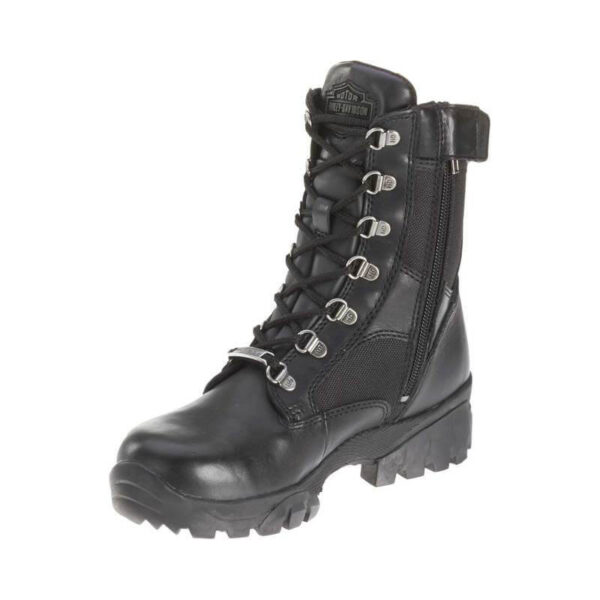- Boots have full grain leather and mesh uppers along with a full length cushion sock lining for hours of comfortable wear, standing, or walking; D-Ring lacing with Harley® Bar & Shield Logo badging on sides