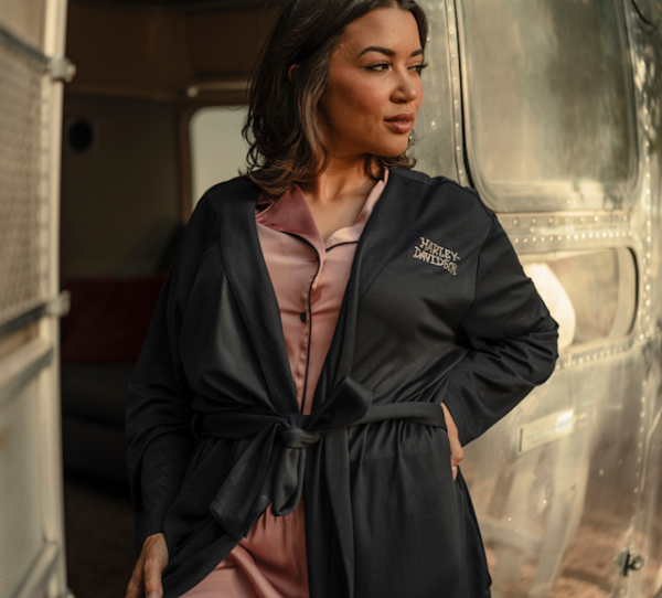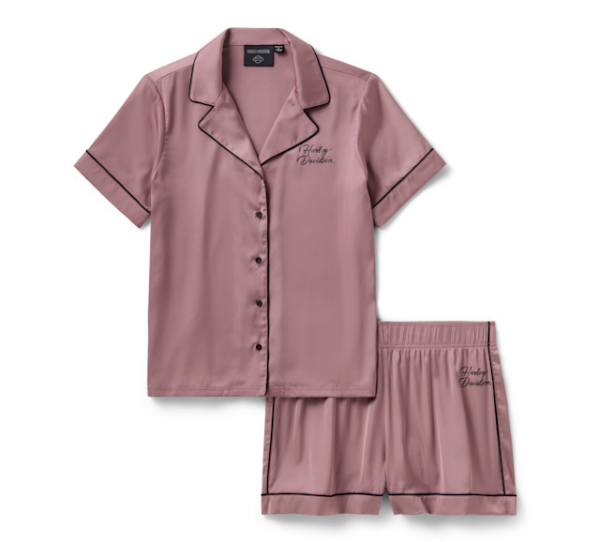 Keep your days lazy and nights dreamy in our Satin Short Set. Crafted for weightless comfort from lightweight polyester satin with a hit of elastane for added stretch, these women’s pajamas feature a button-front top and elastic waistband shorts. Styled with satin piping and a hit of our scripted branding in metallic print for a lowkey H-D look.