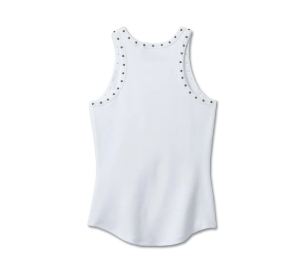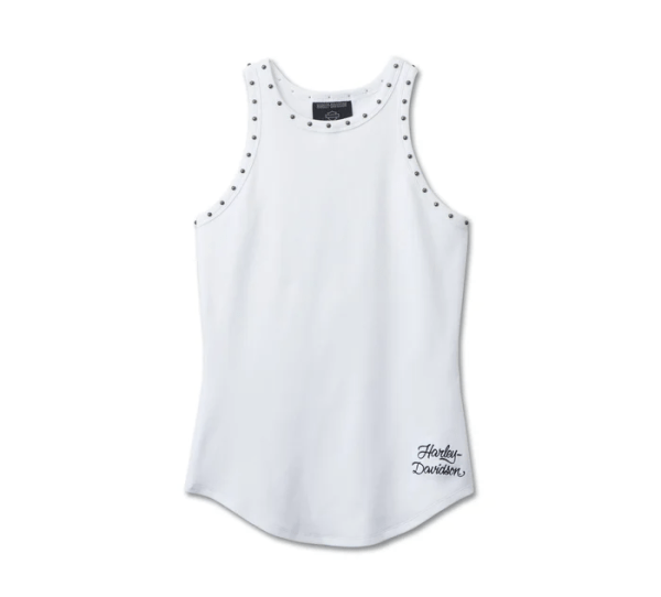 Studded, stay-cool style is what our Limited-Edition Sedona Tank is all about. Crafted from ring-spun ribbed cotton with a hit of spandex for added stretch, this women’s tank top features a bound crew neckline and flattering shirttail hem that lengthens your leg line. Finished with domed studded trim and a kiss of our embroidered branding near the hem for a lowkey H-D look.