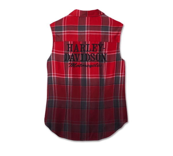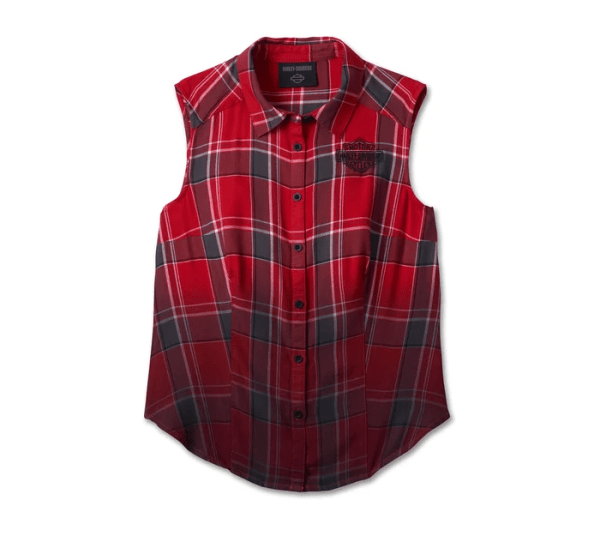 Women’s Simmering Sleeveless Shirt – YD Plaid – Bold Red