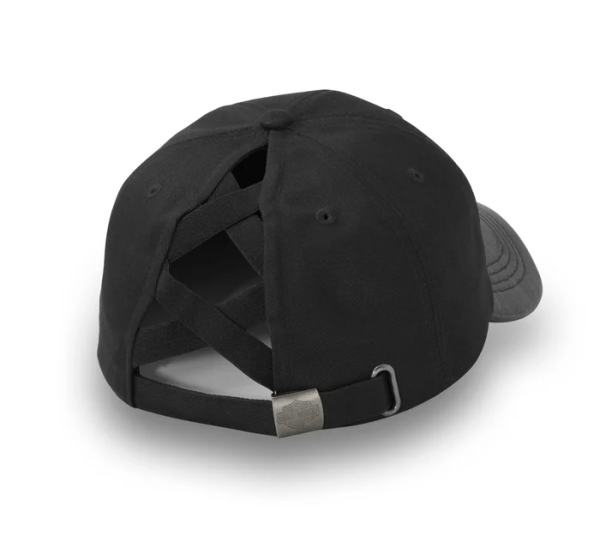 Women’s Stacked Bar & Shield Ponytail Cap – Harley Black