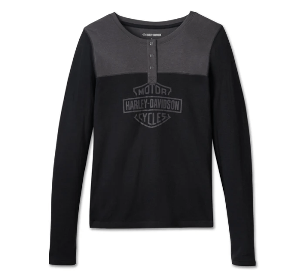 Women’s Timeless Long Sleeve Henley – Colorblock – Harley Black & Blackened Pearl